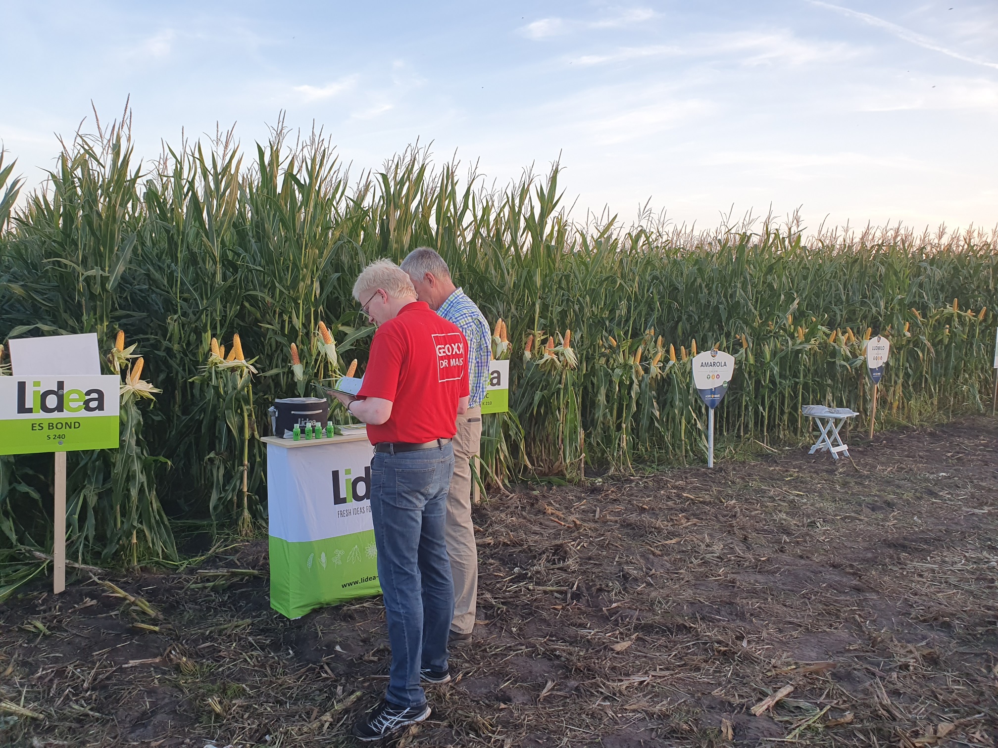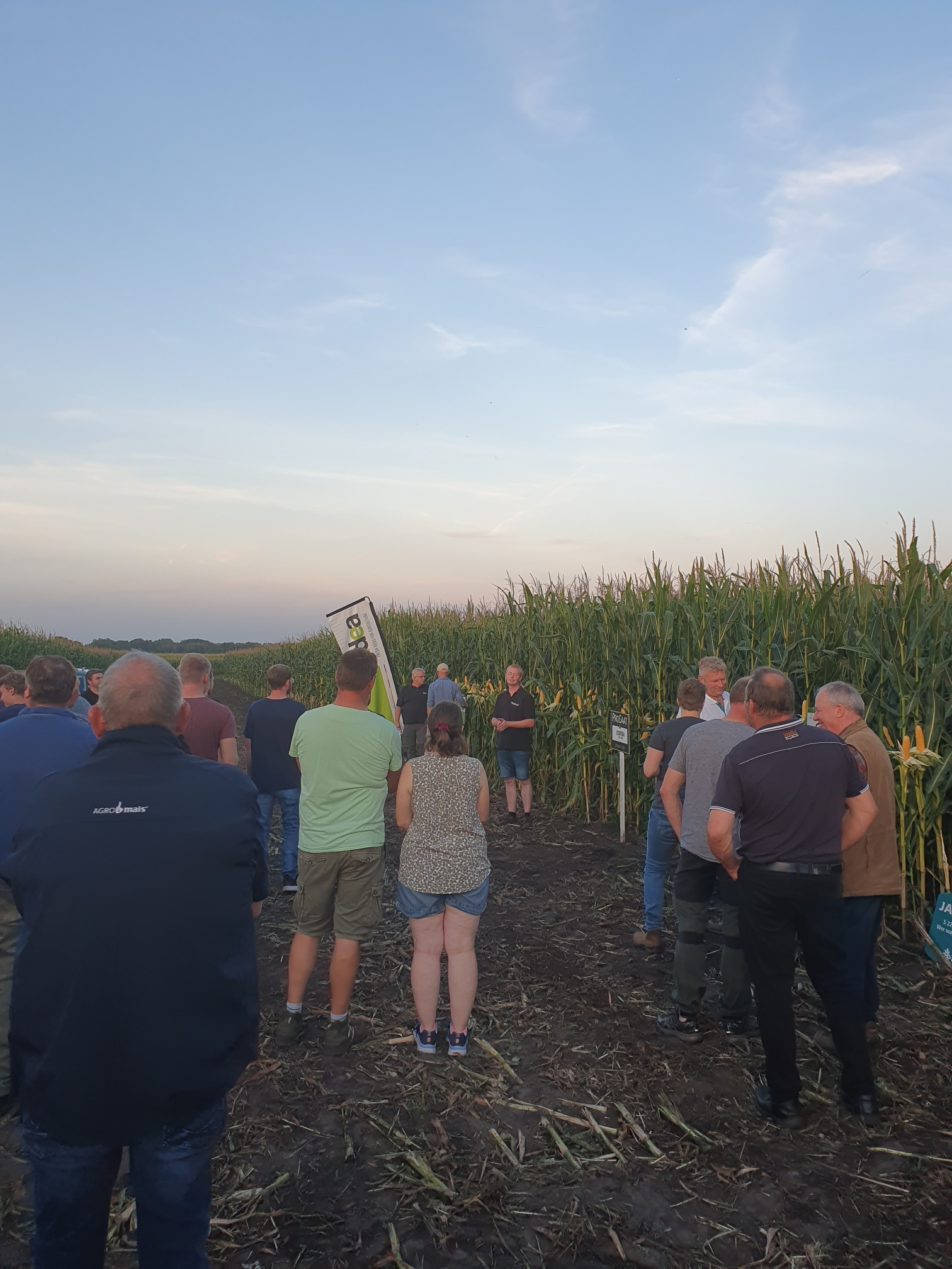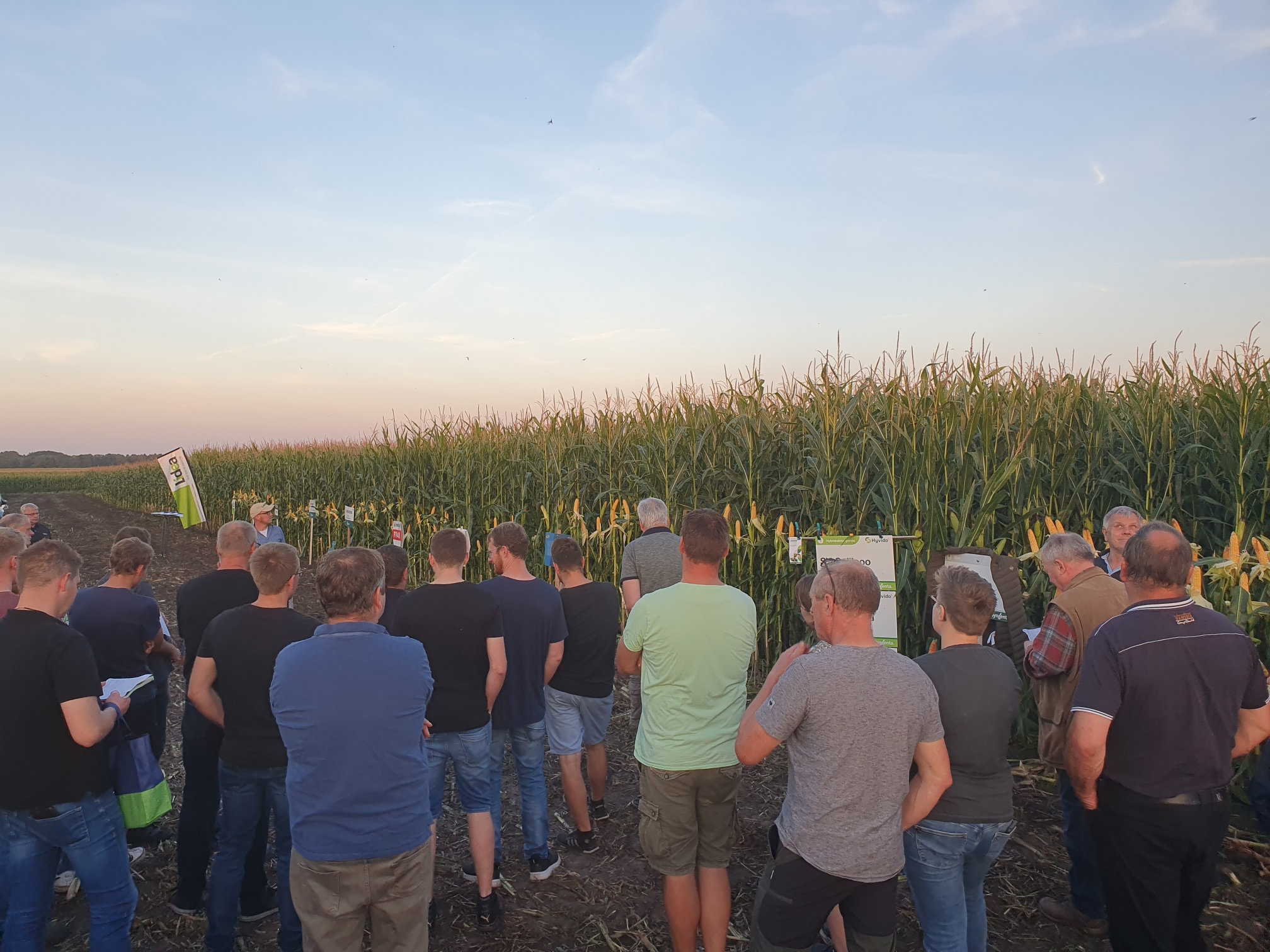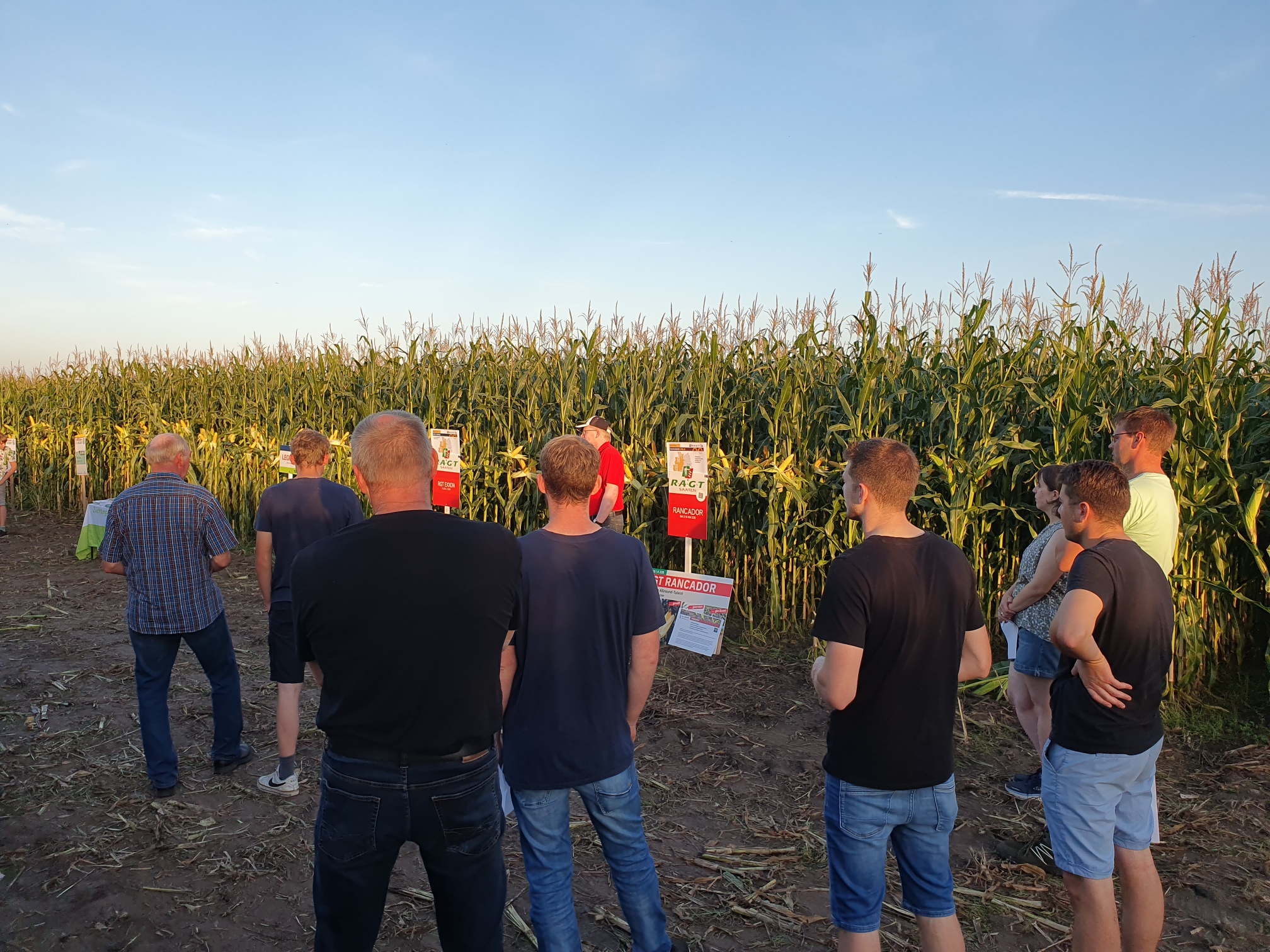 Auf den Flächen von Familie Hanssen präsentierten am Freitag Abend knapp ein Dutzend Aussteller ihre Maissorten. Bei sommerlichen Temperaturen lauschten zahlreiche Landwirte den Ausführungen der Züchter.