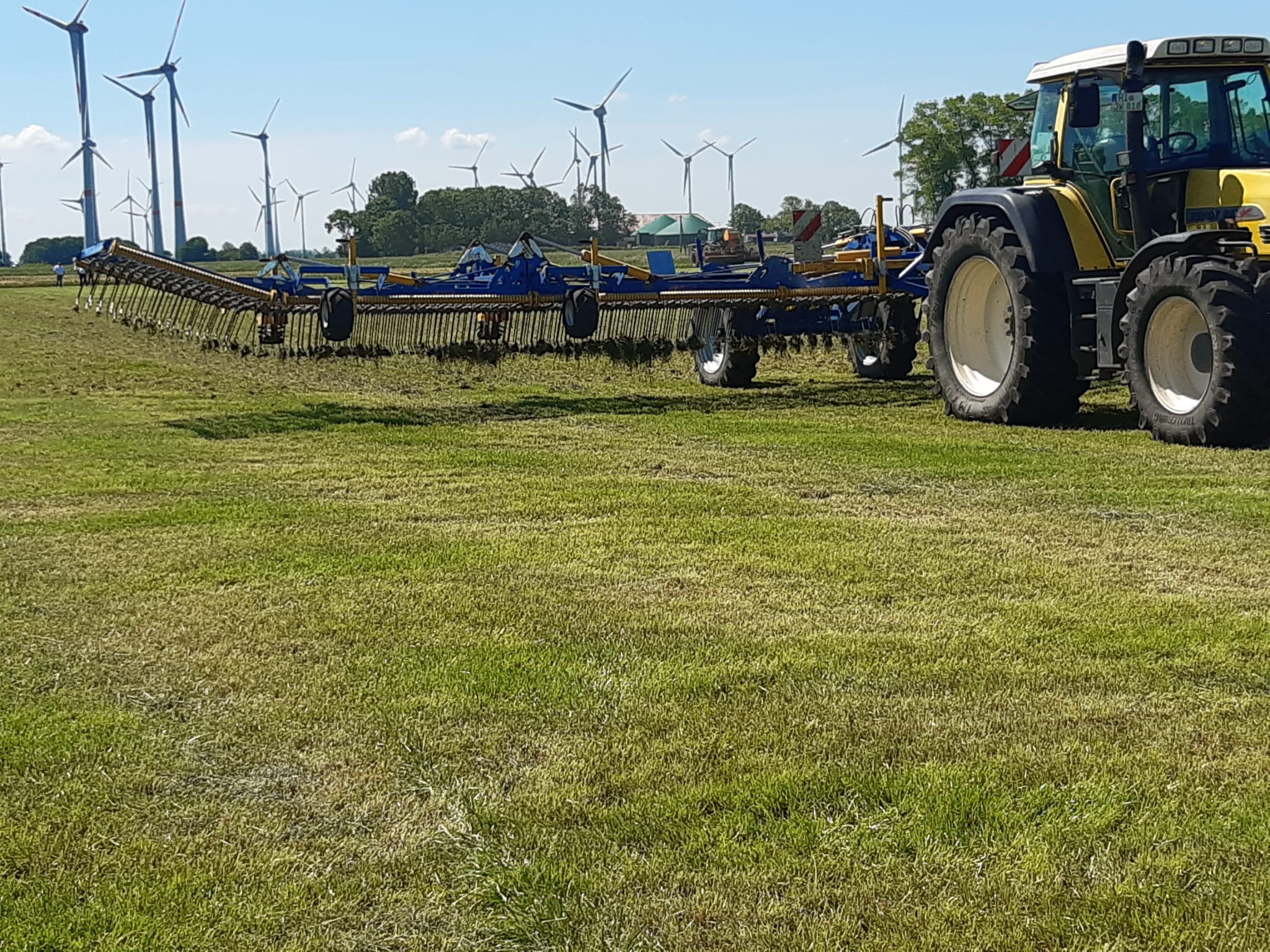 Auf den Flächen von Landwirt Johann Loog, Nahe Dornum, konnten wir über 50 Gäste zu unserem LNW-Grünlandtag begrüßen. Das große Thema war die Grünlandpflege. Verschiedene Striegel und Nachsaattechniken wurden von einem Dutzend Fachleuten vorgestellt.