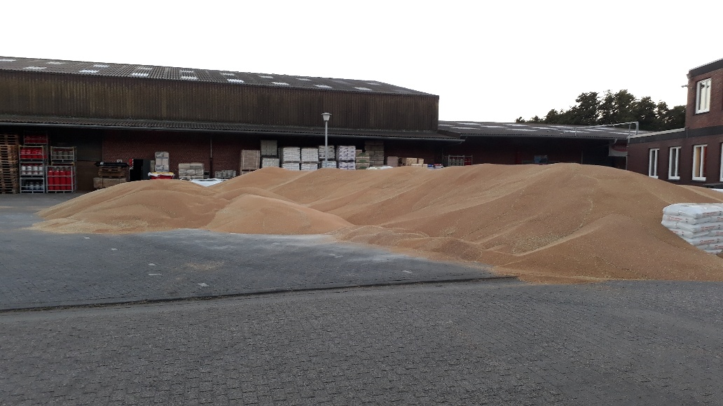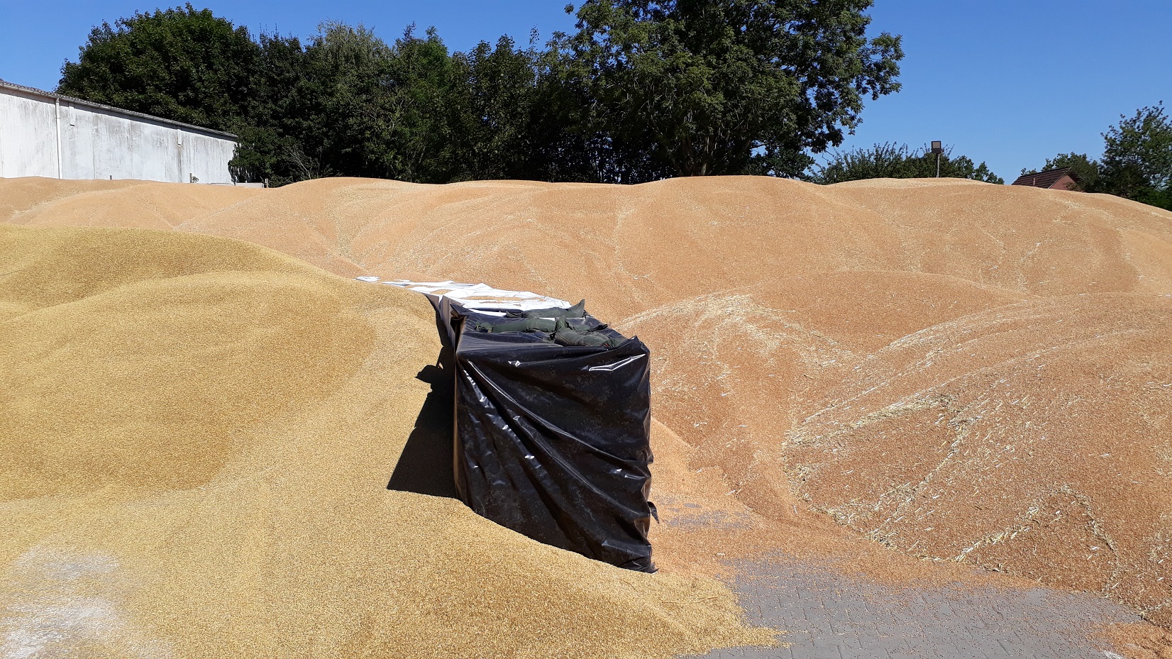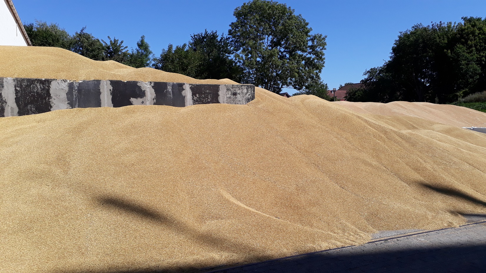Die Ernte läuft aktuell an allen LNW-Standorten auf Hochtouren. Aufgrund des enormen Ernteeingangs werden alle möglichen Freiflächen zu Lagerflächen umfunktioniert.